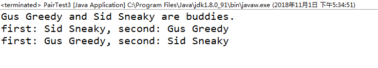 c) 无限定通配符:Pair<?>。 Pair<?>与Pair的不同在于:可以用任意Object 对象调用原始的Pair类的setObject方法。