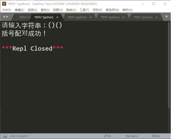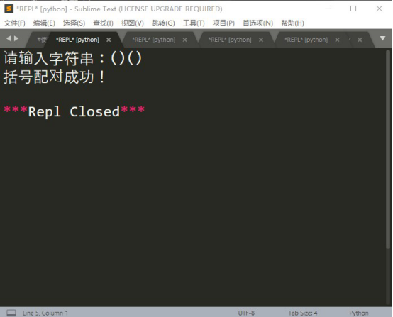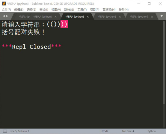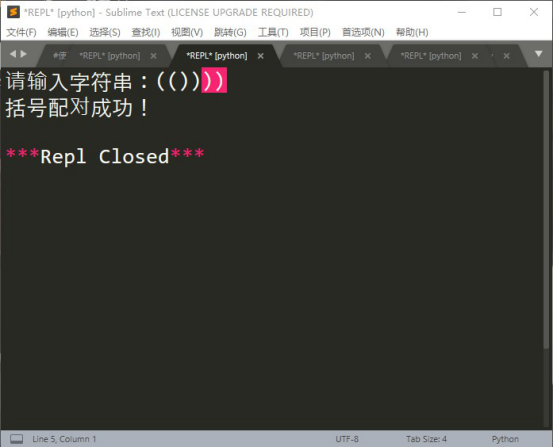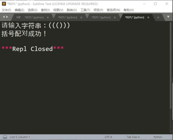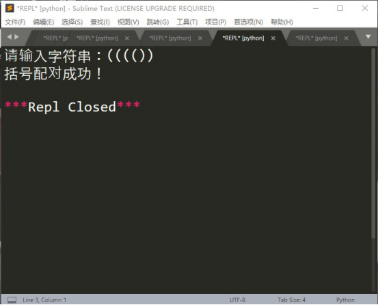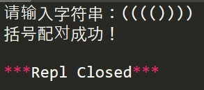 上面的程序可以正常运行,但我发现了新的问题:以上代码并不适用于所有可能的输入,比如我输入(((()),即左括号比右括号多的情况,程序运行结果却未报错。