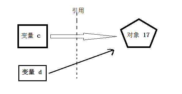 >>> d = c #2 c 和 d 都是对象17的一个引用,c指向17,d也是