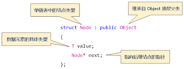 - 定义内部结点类型Node,用于描述数据域和指针域
