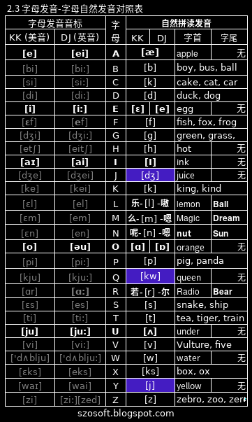 - 左边是字母本身的发音音标,分别有KK及DJ音标;