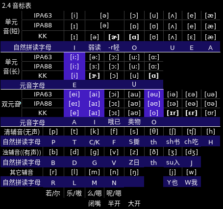 包含了IPA63, IPA88, KK, 三个版本的音标对照