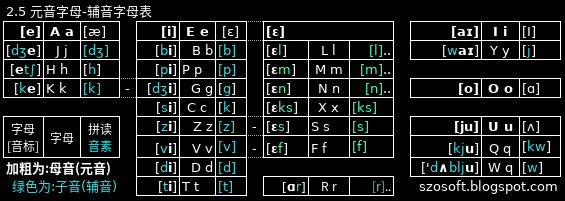 - 大部分辅音字母和它们的自然发音音标长得一样,除了这些: Q[kw], C[k], Y[j], J[dʒ], X[ks],