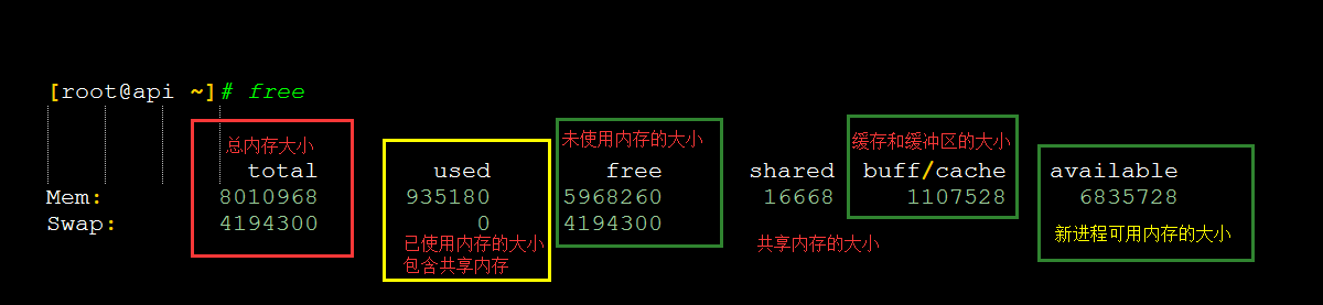 这里尤其注意一下,最后一列的可用内存 available,available 不仅包含未使用内存,还包括了可回收的缓存,所以一般会比未使用内存更大。
