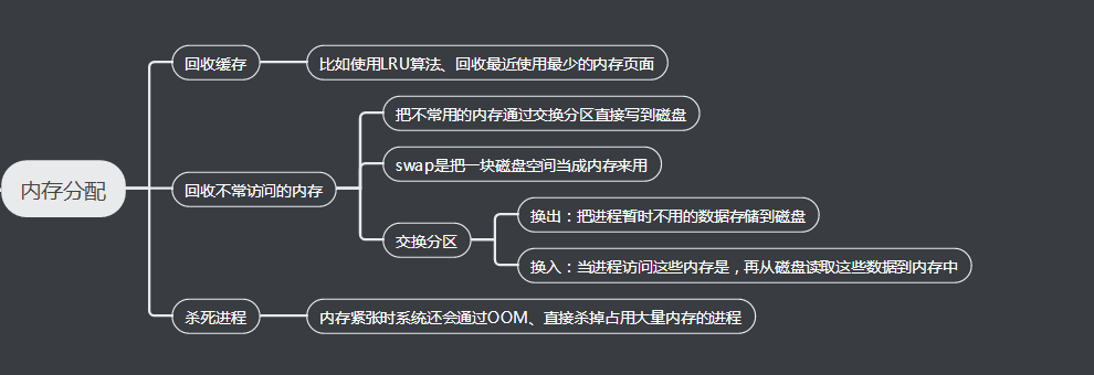 当然,系统也不会任由某个进程用完所有内存,在发现内存紧张时,系统就会通过一系列机制来回收内存,比如下面下面这三种方式: