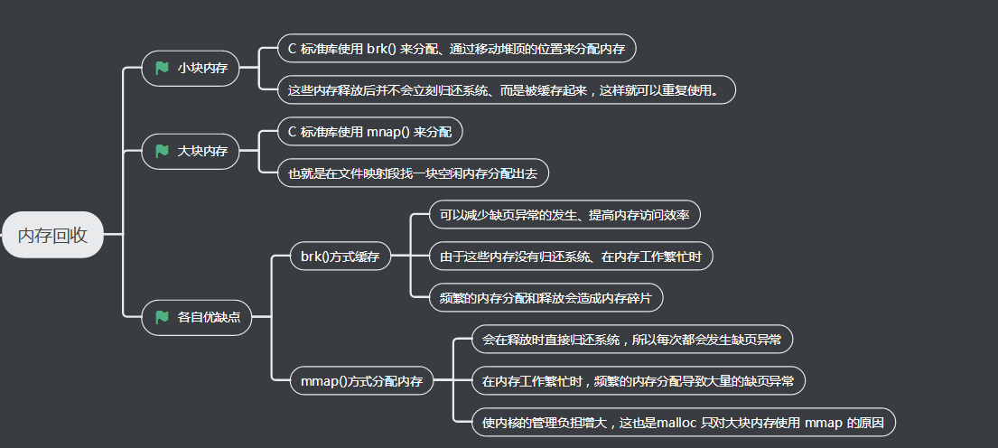 对内存来说,如果只分配而不释放,就会造成内存泄漏,甚至会耗尽系统内存。所以,在应用程序用完内存后,还需要调用free() 或 unmap() ,来释放这些不用的内存。