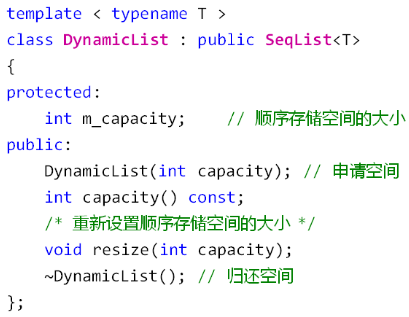 - DynamicList 支持<font color=purple>动态重置</font>顺序存储空间的大小