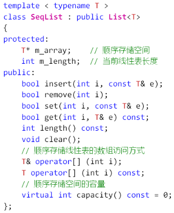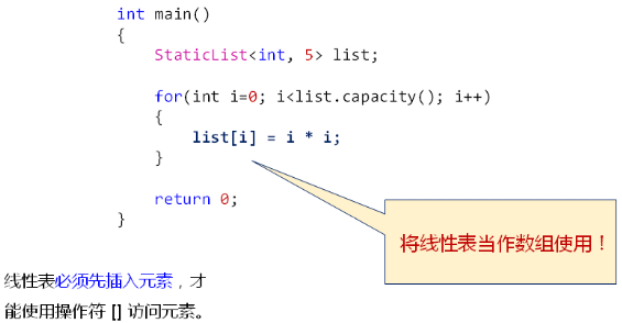 问题分析: 顺序存储结构线性表提供了数组操作符重载,<font color=green>通过重载能够快捷方便的获取目标位置处的数据元素</font>,在具体的使用形式上类似数组,<font color=red>但是由于本质不同,不能代替数组使用</font>。