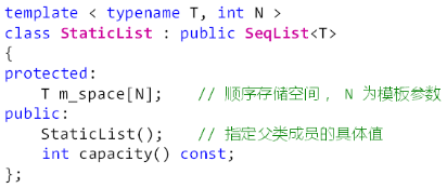 - StaticList 通过<font color=red>模板参数</font>定义顺序存储空间