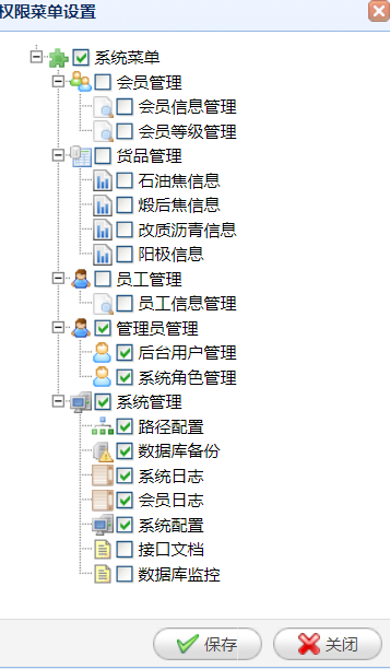 (String)allMenuObj:[{"children":[{"children":[{"attributes":{"url":"/admin/member/members"},"id":1010,"text":"会员信息管理","state":"open","iconCls":"menu-11"},{"attributes":{"url":"/admin/member/mrole"},"id":1020,"text":"会员等级管理","state":"open","iconCls":"menu-12"}],"attributes":{},"id":10,"text":"会员管理","state":"closed","iconCls":"menu-1"},{"children":[{"attributes":{"url":"/admin/goods/coke"},"id":2010,"text":"石油焦信息","state":"open","iconCls":"menu-21"},{"attributes":{"url":"/admin/goods/calcined"},"id":2020,"text":"煅后焦信息","state":"open","iconCls":"menu-22"},{"attributes":{"url":"/admin/goods/asphalt"},"id":2030,"text":"改质沥青信息","state":"open","iconCls":"menu-23"},{"attributes":{"url":"/admin/goods/anode"},"id":2040,"text":"阳极信息","state":"open","iconCls":"menu-24"}],"attributes":{},"id":20,"text":"货品管理","state":"closed","iconCls":"menu-2"},{"children":[{"attributes":{"url":"/admin/power/user"},"id":4010,"text":"后台用户管理","state":"open","iconCls":"menu-41"},{"attributes":{"url":"/admin/auth/roleconfig"},"id":4020,"text":"系统角色管理","state":"open","iconCls":"menu-42"}],"attributes":{},"id":40,"text":"管理员管理","state":"closed","iconCls":"menu-4"},{"children":[{"attributes":{"url":"/admin/auth/menu"},"id":5010,"text":"路径配置","state":"open","iconCls":"menu-51"},{"attributes":{"url":"/admin/auth/dbbackup"},"id":5020,"text":"数据库备份","state":"open","iconCls":"menu-52"},{"attributes":{"url":"/admin/auth/syslog"},"id":5030,"text":"系统日志","state":"open","iconCls":"menu-53"},{"attributes":{"url":"/admin/auth/memberlog"},"id":5040,"text":"会员日志","state":"open","iconCls":"menu-54"},{"attributes":{"url":"/admin/auth/sysconfig"},"id":5050,"text":"系统配置","state":"open","iconCls":"menu-55"},{"attributes":{"url":"/admin/swagger"},"id":5060,"text":"接口文档","state":"open","iconCls":"menu-56"},{"attributes":{"url":"/admin/druid"},"id":5070,"text":"数据库监控","state":"open","iconCls":"menu-57"}],"attributes":{},"id":50,"text":"系统管理","state":"closed","iconCls":"menu-5"},{"children":[{"attributes":{"url":"/admin/employees/employees"},"id":3010,"text":"员工信息管理","state":"open","iconCls":"menu-31"}],"attributes":{},"id":30,"text":"员工管理","state":"closed","iconCls":"menu-3"}],"attributes":{},"id":1,"text":"系统菜单","state":"closed","iconCls":"menu-plugin"}]