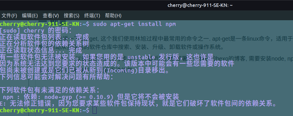 没有它, 可以说是在linux上寸步难行了, 最近因为想部署一个自己的hexo的博客, 需要安装node, npm, 可是使用apt-get却无法安装,