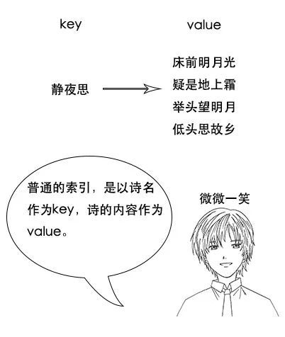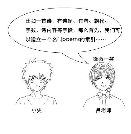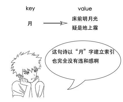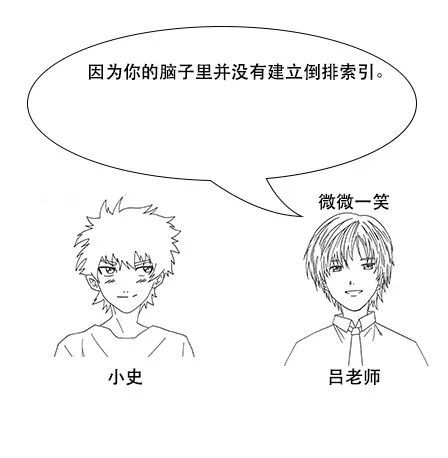 吕老师:但是我让你说出带“前”字的诗句,由于没有索引,你只能遍历脑海中所有诗词,当你的脑海中诗词量大的时候,就很难在短时间内得到结果了。