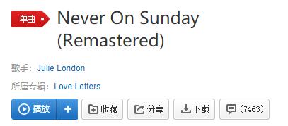 @安非他命 :分享Julie London的单曲《Never On Sunday (Remastered)》: