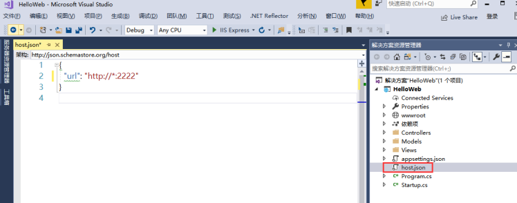添加host.json文件,设置端口号(可以改成其他端口号)