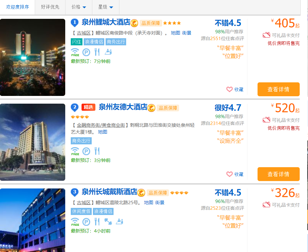 名称:爬取携程网站泉州地区酒店信息