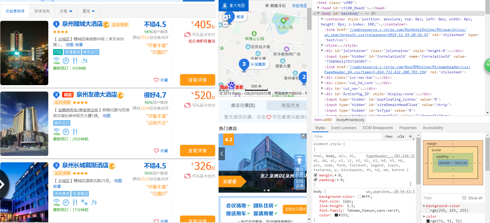 本次爬虫主要爬取携程网站泉州地区酒店名称与地址和酒店评分