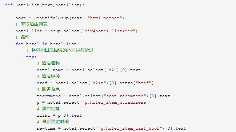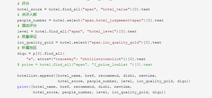 hotellist.append([hotel_name, href, recommend, dizhi, newtime,