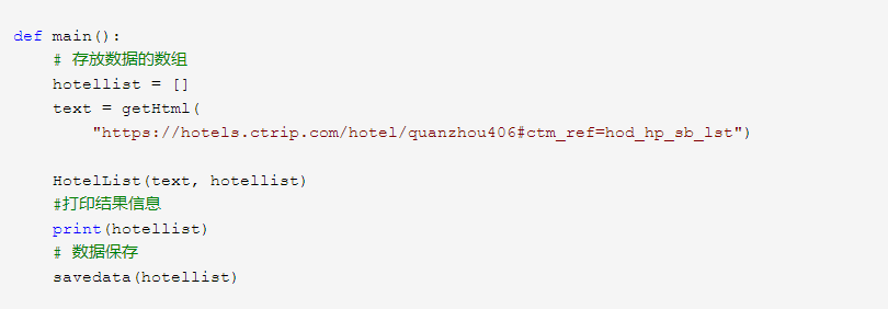 实现思路:本次设计方案主要使用request库爬取网页信息和beautifulSoup库来提取泉州地区酒店信息
