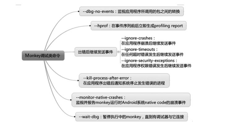 E、使用--ignore-crashs和--ignore-timeouts参数使Monkey遇到意外时能继续执行 在执行Monkey测试时,会因为应用的崩溃或没有响应而意外终止,所以需要在命令中增加限制参数--ignore-crash和--ignore-timeouts,让Monkey在遇到崩溃或没有响应的时候,能在日志中记录相关信息,并继续执行后续的测试。