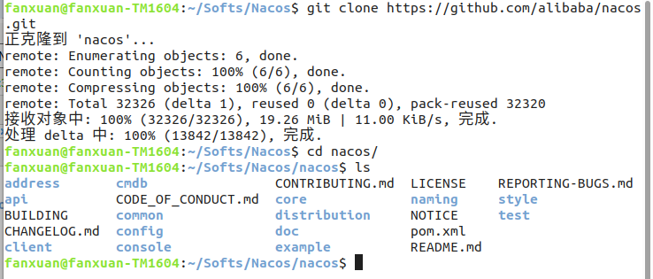 在你需要安装的地址下,执行:git clone https://github.com/alibaba/nacos.git