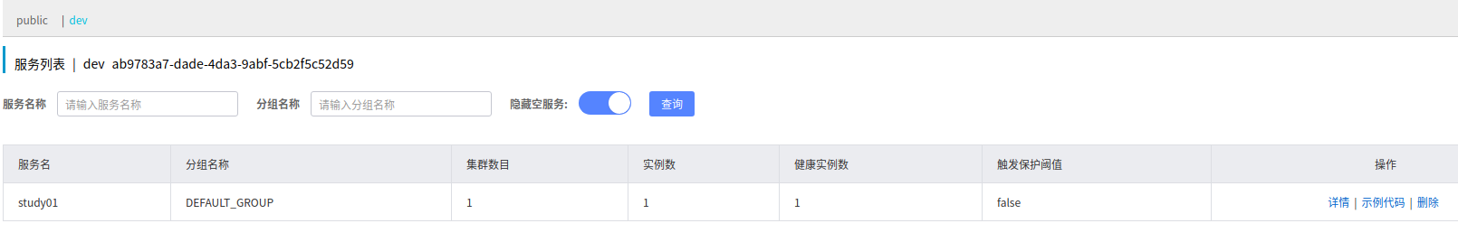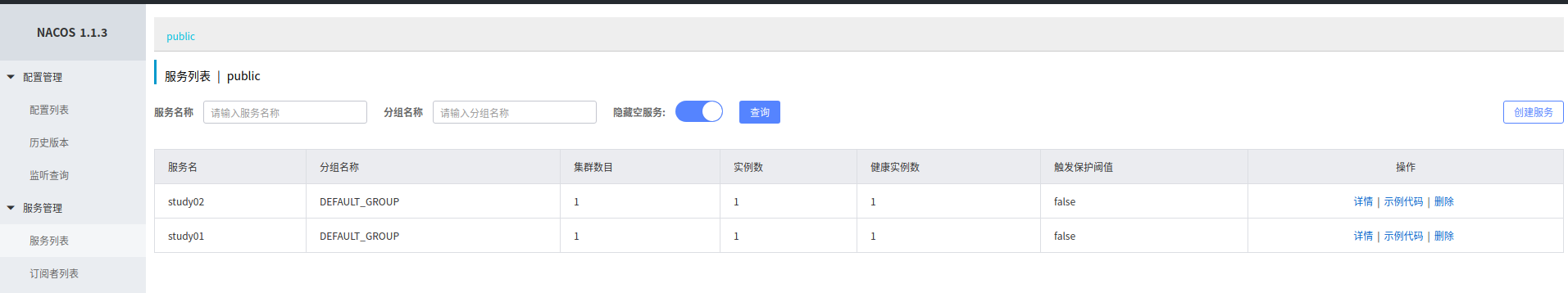启动服务,打开Nacos Server控制台,可以看见刚刚启动的服务已经注册成功。