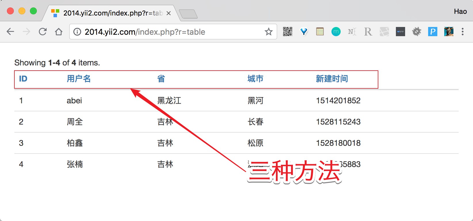 当然yii2已经做的相当细节,你可以不写columns,GridView会根据dataProvider自动渲染出每一列,接下来我们开始问答区域,通过一问一答来深度了解GridView。