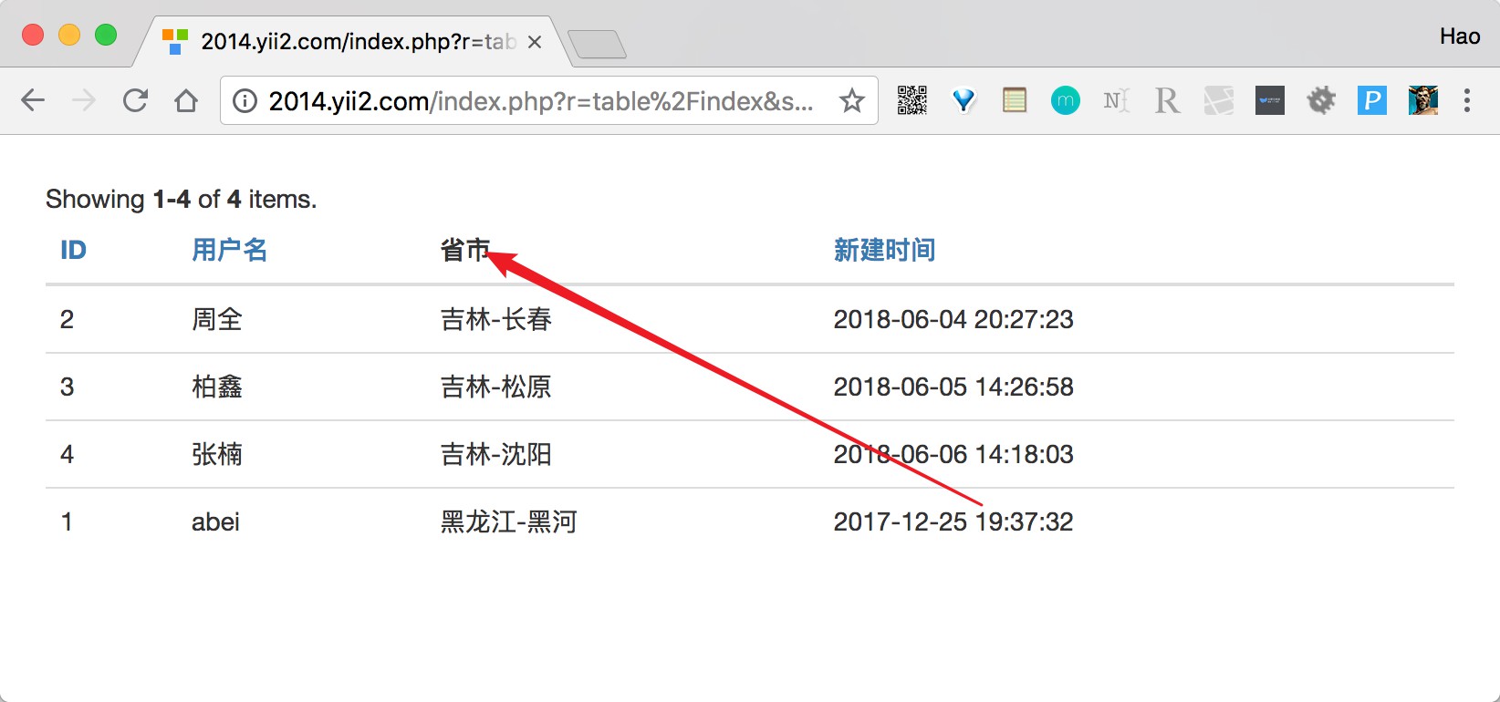 但是问题出现了,我希望省市一列按照省属性来排序,怎么办?只需要指定attribute即可,这也是我们控制列排序的一种方法。