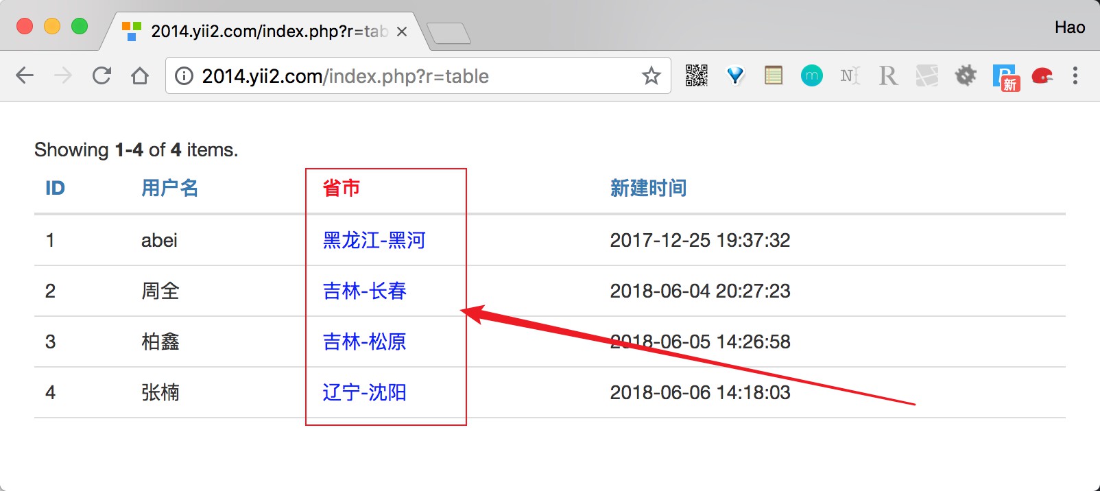 'columns'=>[ [ 'label'=>'省市', 'attribute'=>'province', 'enableSorting'=>false, 'value'=>function($model){ return "{$model->province}-{$model->city}"; } ] ] ]); }catch(\Exception $e){ // todo }