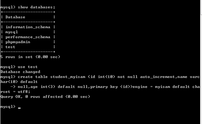 null,age int(3) default null,primary key (id))engine = myisam default charset = utf8;