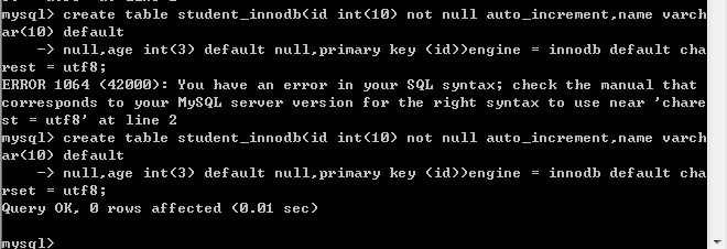 create table student_innodb (id int(10) not null auto_increment,name varchar(10) default
