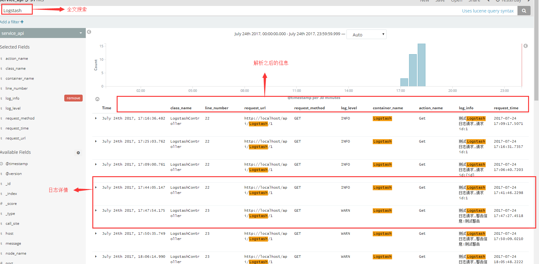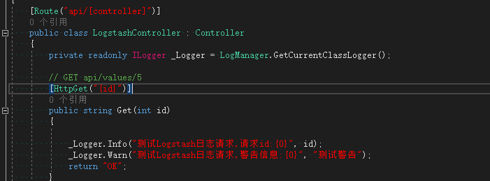 下面是本文介绍的重点内容了,通过Nlog记录日志,将消息发送到logstash,logstash将转换后的消息存储到elasticsearch,并供在kibana中查询使用。