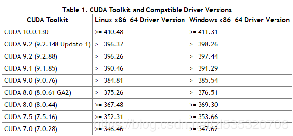 网上也有人总结不同linux内核版本与N卡驱动、Cuda版本之间兼容关系[3].这里我直接粘贴图片。