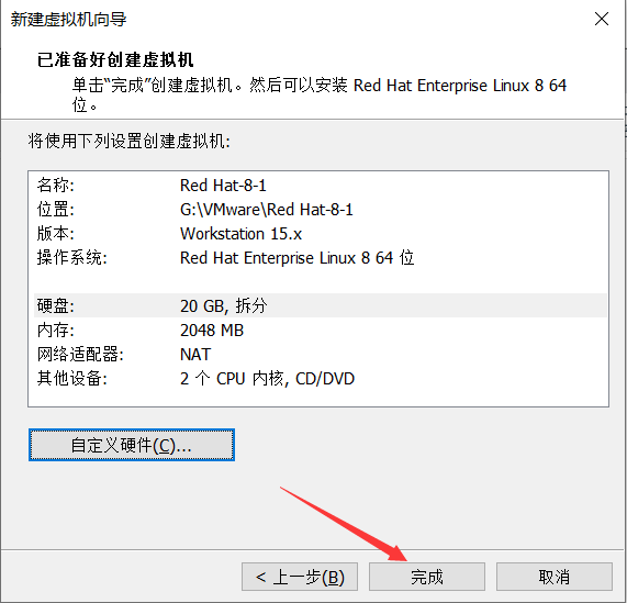 注意:如何你的VMware不是15版本以上,则没有Red Hat 8这个选项的。