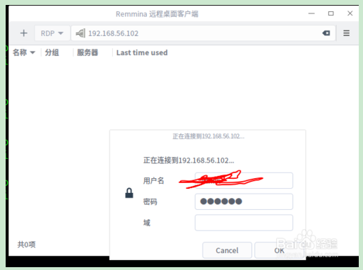 按回车键后输入windows上可以使用的远程桌面用户和密码,点击ok键。