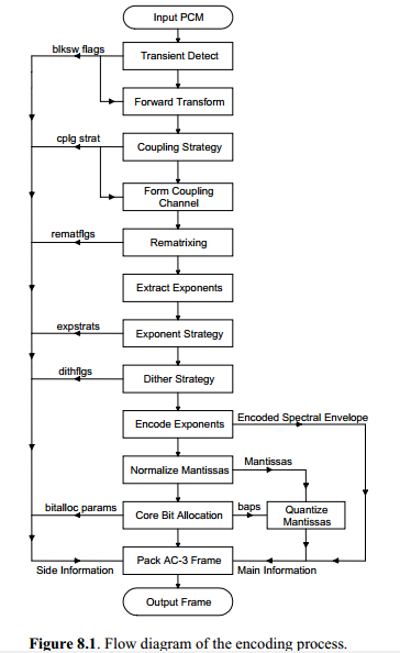 将上述过程产生的side info,exponents和quantized mantissa pack成AC-3 frame