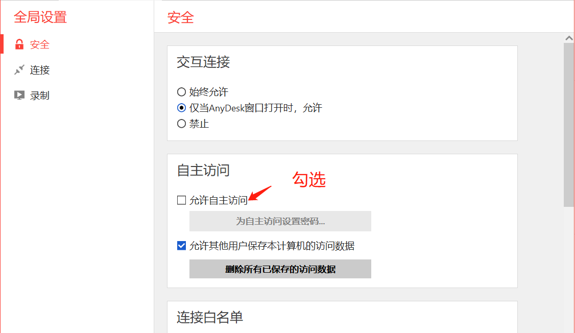 2、勾选“允许自主访问”