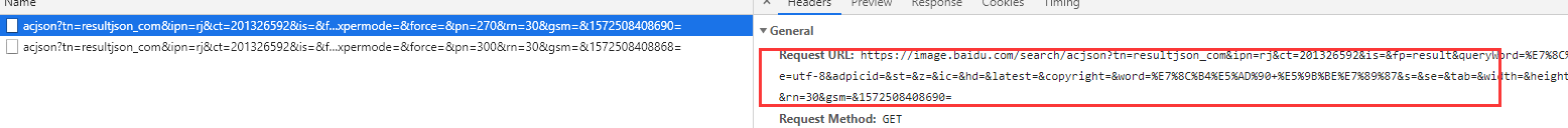 url = 'https://image.baidu.com/search/acjson?tn=resultjson_com&ipn=rj&ct=201326592&is=&fp=result\