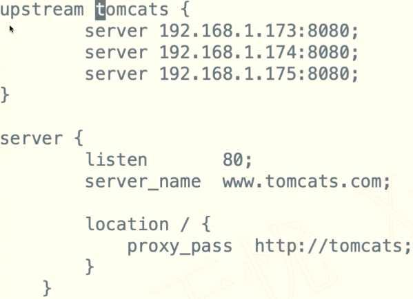 到http://tomcats这个url,这个url对应上面配置的upstream配置,会使用下面三台tomcat的其中一台响应请求.