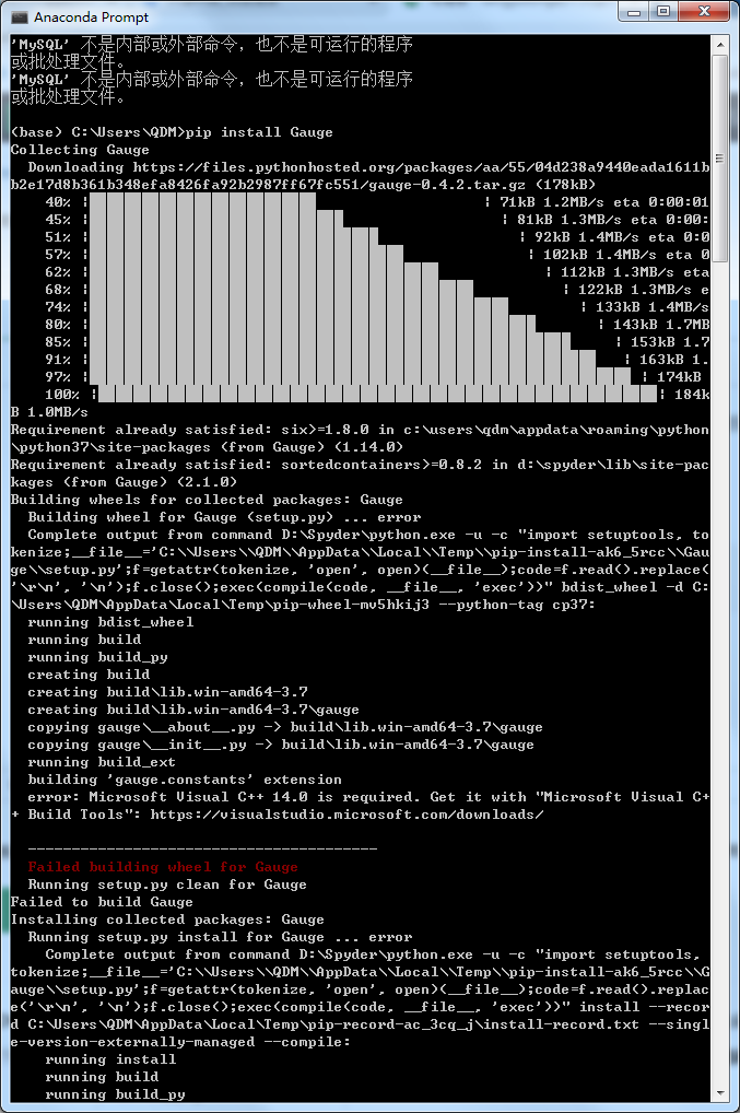 先在Anaconda里面安装pyecharts和Gauge这两个模块,指令如下: