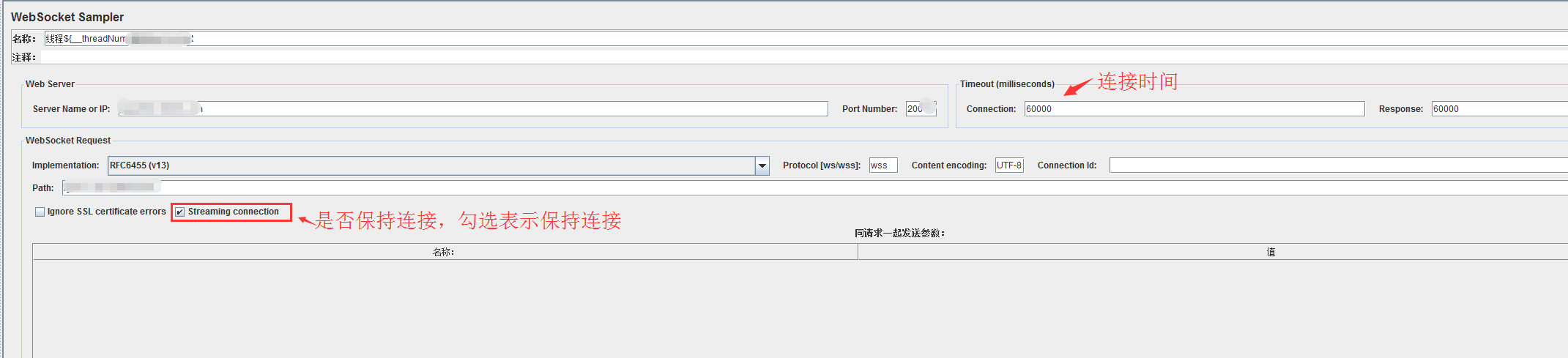 (1)Server Name or IP:WebSocket发送的目标服务器的地址或者名称