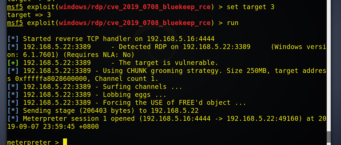 use exploit/windows/rdp/cve_2019_0708_bluekeep_rce