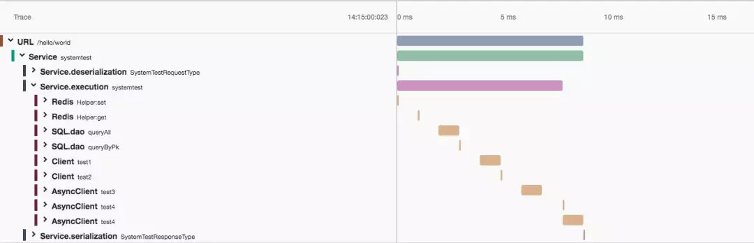 所谓服务质量,包含了响应时间(性能),错误率,稳定性等多种特性。对于性能需求,Trace 的记录天然的展示了该调用链路的耗时分布,通过对调用链路中对应目标的事务的分析,开发人员可以快速地定位系统交互链路上的瓶颈,从而更好地对症下药。