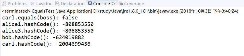 ② Objec的equals方法 定义为:x.equals(y)当x和y是同一个对象的应用时返回true,否则返回false.