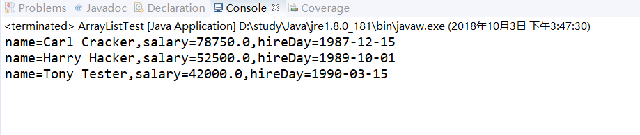 17 staff.add(new Employee("Carl Cracker", 75000, 1987, 12, 15));