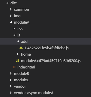 // 修改后的配置,这里的[name]就是入口处的占位符,放到我们这里来说就分别是 moduleA|moduleB|moduleC,所以这里我们这么配置就是将不同的模块文件打包到各自的模块名称的js文件夹下