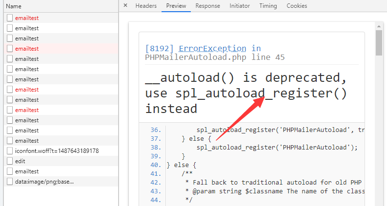 问题1:报错__autoload() is deprecated, use spl_autoload_register() instead