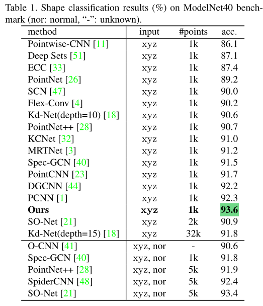 虽然在modelnet40上取得了93.6的结果,但是看消融实验可知,作者加入了很多trick才得到这样的精度,比如Pointnet++中的多尺度,以及voting test(具体是啥暂不明了),如果去除多尺度和voting test只能达到92.2的精度。虽说创新点少,但论文中那么多的分析也需要大量的积累才能做到。