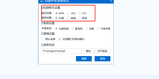 3、使用该iphone屏幕录制应用,还可以轻松录制ios设备屏幕,并保存为MP4、AVI、FLV三种视频格式,我们可以自己选择保存的格式。如图所示: