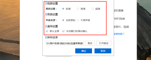 2、打开电脑上的投屏工具,如果投屏的同时也需要录屏的话,在电脑设置中修改画质、通用设置等必要参数,根据自己需要去修改。如图所示: